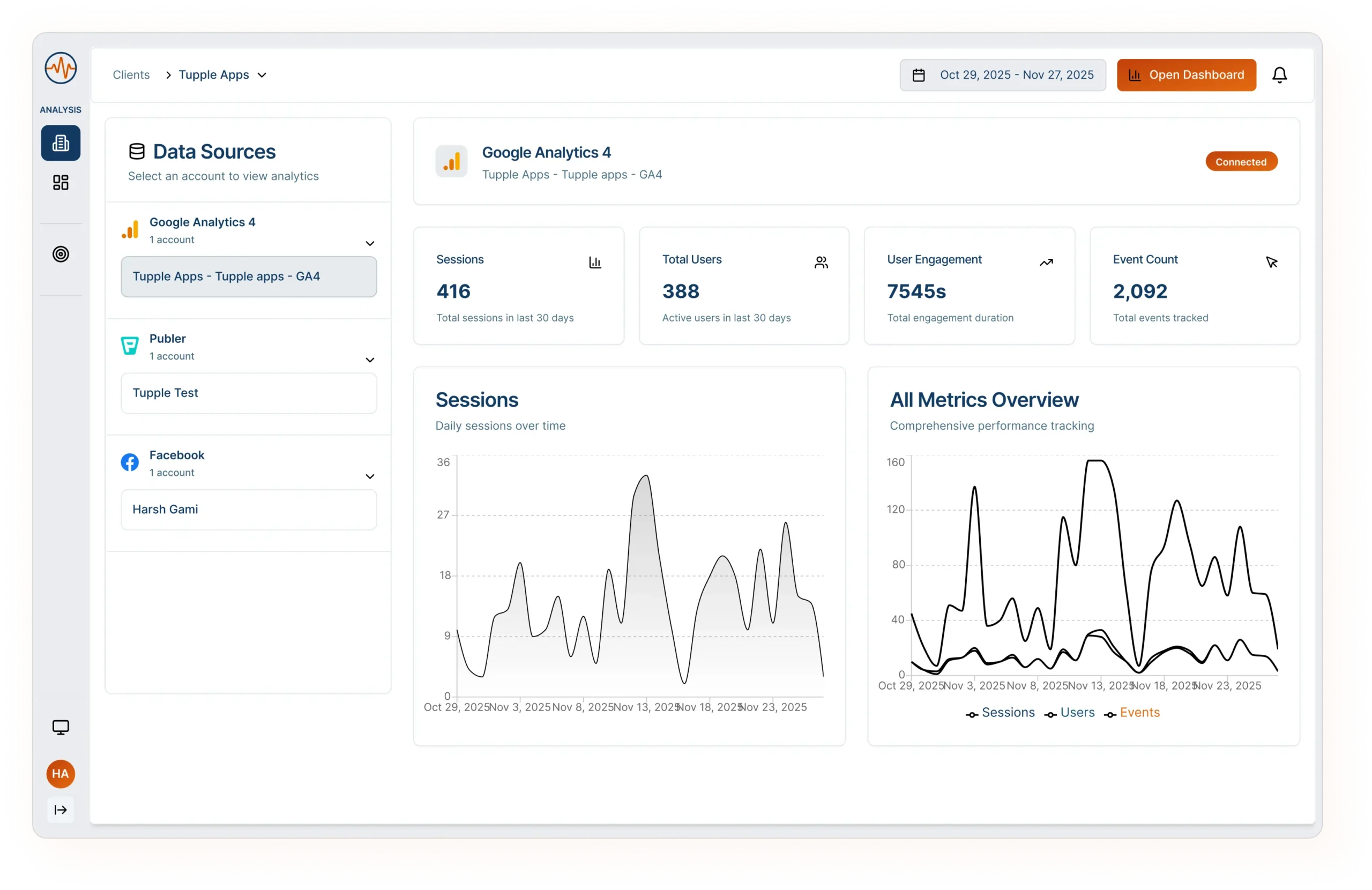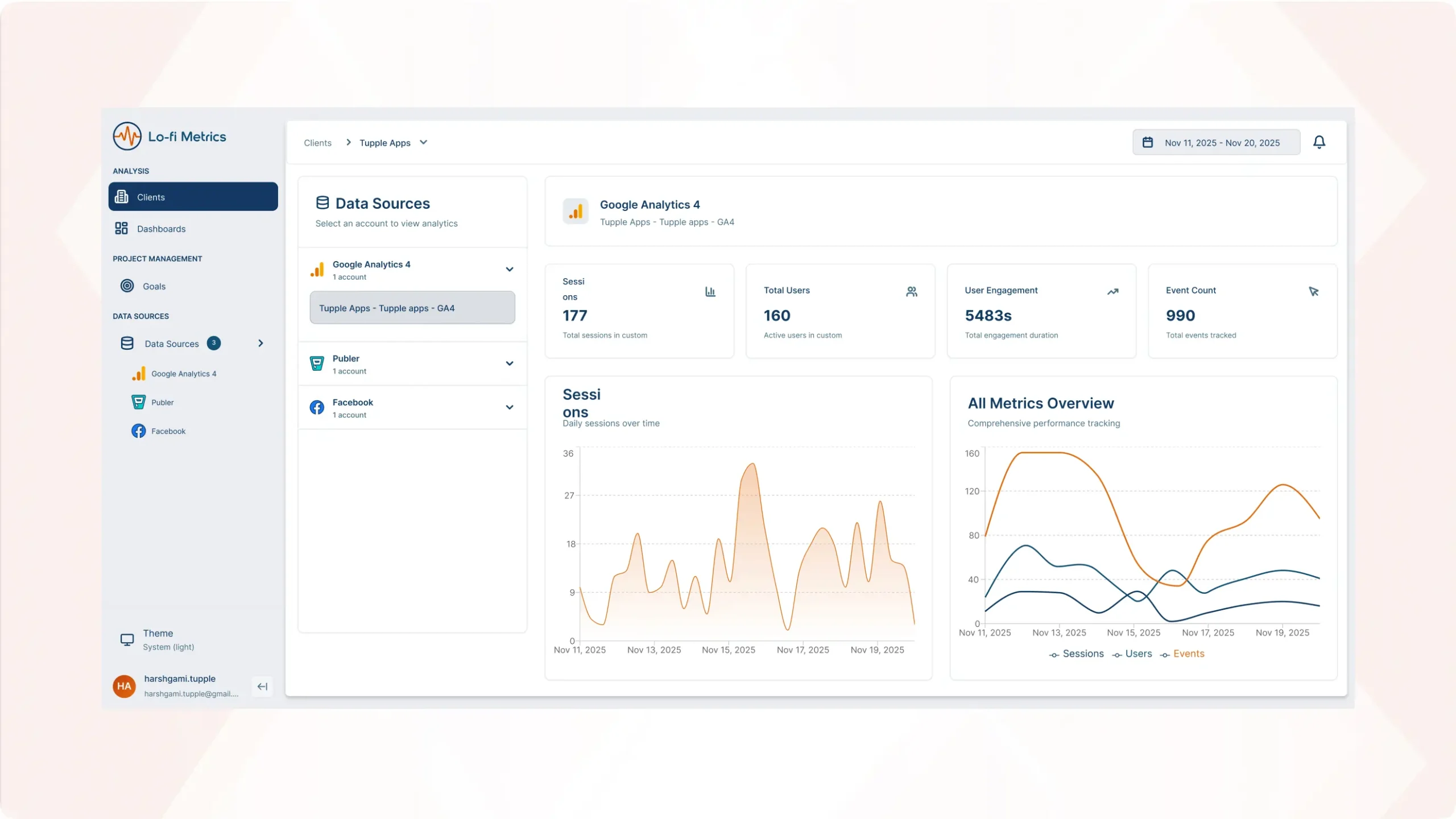 Link Google Ads, GA4, Stripe, and Publer in a few clicks — no developer needed, no complex setup, no onboarding call required. Connect your accounts, and your data starts flowing in automatically. That’s it.